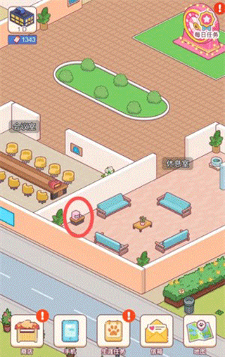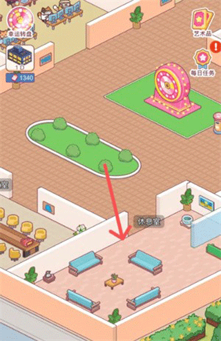 1、进入搬砖之王主界面,找到休息室,然后单击任何区域进入。