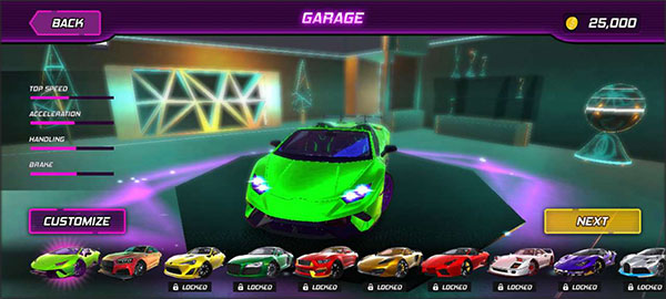 2、选择模式后,选择车辆,当你有足够的金币时,可以解锁其他车辆。