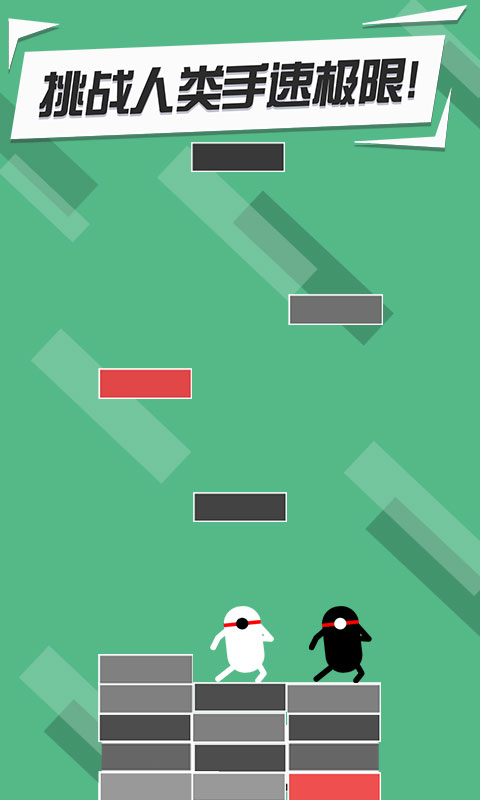 2、控制角色,使下落的黑白条准确对应下面小人物的颜色。