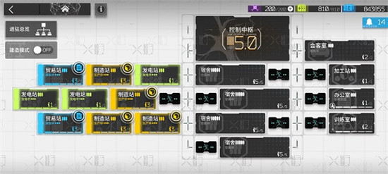 4、资源系统,玩家可在罗德岛基建中建造制造站、加工站与发电站。制造站需消耗特定时间生产技能概要、赤金、作战记录等道具。加工站可消耗龙门币将低等级素材加工为高等级素材。发电站为其他设施供电,且制约其等级提升。升级制造站与加工站可解锁更高级素材的制造 / 加工配方,并扩充站内可进驻干员的数量上限;