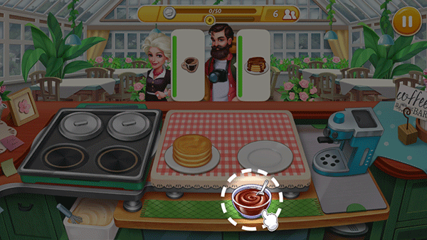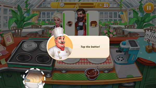 4、介绍完餐厅后,点击绿色箭头开始你的第一个关卡。