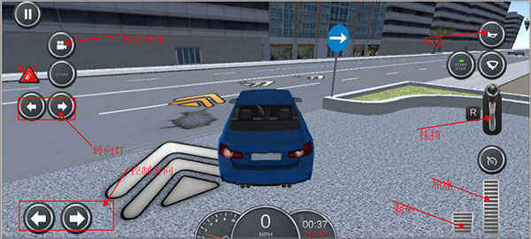 4、驾驶操作如下图所示,真实模拟了真实驾驶,遵守交通规则,否则将被扣分,安全驾驶到终点线并完成游戏任务。