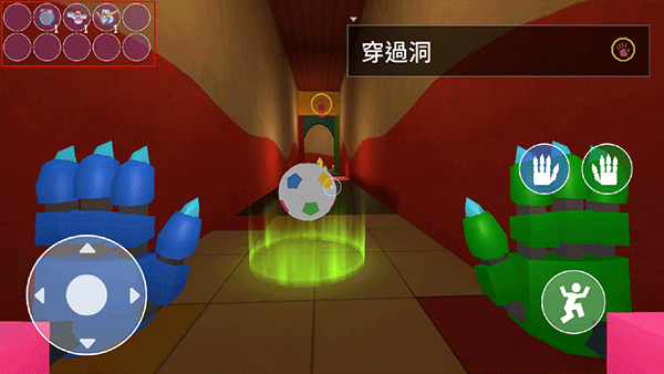 2、这里以玩具厂为例,游戏的操作非常简单,左边控制角色的移动,而右边控制机械手和跳跃。