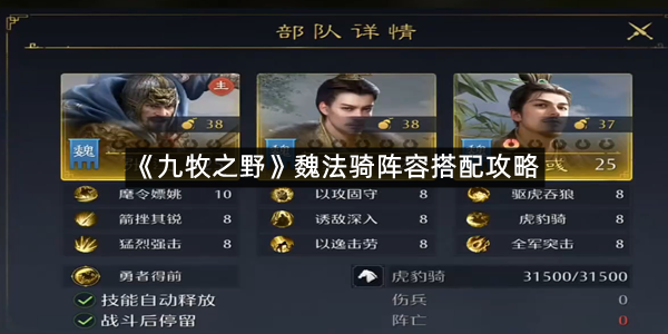 《九牧之野》是一款国产的slg三国策略游戏,玩家们可以在这里自由搭配自己的队伍,去体验不同的战斗玩法。其中比较受欢迎的魏法骑阵容该如何搭配呢?现在就让指玩手游网的小编为大家带来关于《九牧之野》魏法骑阵容搭配攻略的全部内容吧,感兴趣的小伙伴一定不要错过哦。