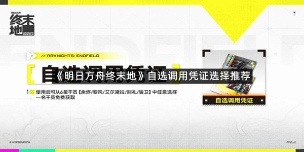 《明日方舟终末地》是一款非常火爆的二次元冒险游戏,玩家们可以在这里完成第一章任务后获得一个自选调用凭证,玩家们可以任选一个六星角色,那么优先选择什么呢?现在就让指玩手游网的小编为大家带来关于《明日方舟终末地》自选调用凭证选择推荐的全部内容吧,感兴趣的小伙伴一定不要错过哦。