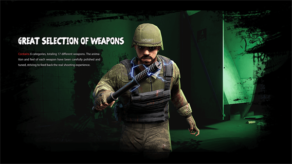 提供6大类别、共17种武器,每把武器的动画效果和操作手感均经过精心调校,力求呈现最真实的射击体验,让玩家在战斗中感受到手感与策略的完美结合。