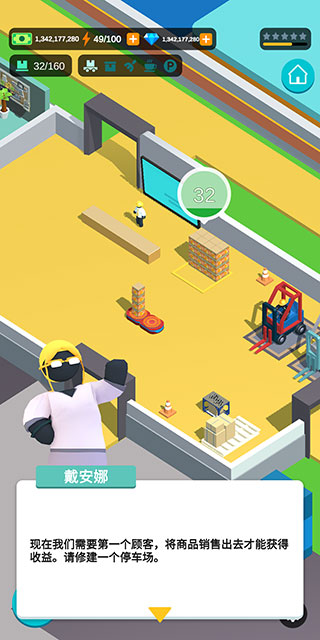 4、现在,你需要迎接第一位顾客,先把商品卖出去才能获得收益,因此请先修建一个停车场。
