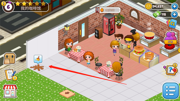 5、点击扫把可以快速清理餐厅内的污渍,让环境保持整洁。