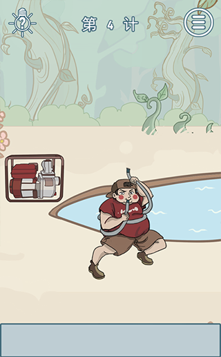 把水管放到水里,帮小胖藏好妈妈,悄悄完成任务。