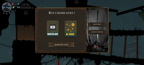2、忍者岚2内置菜单横向卷轴2D战斗场景,在黑暗的夜晚冒险,加速在这条路上的冲刺。
