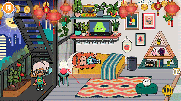 4、点击月亮图标可以切换白天和夜晚;此外,还可以让角色洗澡、打扫房子、去逛街等,操作自由度很高。