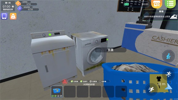4、游戏中可以布置各种设施,使洗衣店实现自动化。