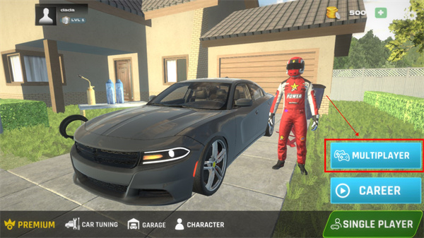 1、进入汽车驾驶学校金币版游戏后,点击主界面的MULTIPLAYER,进入多人游戏模式。