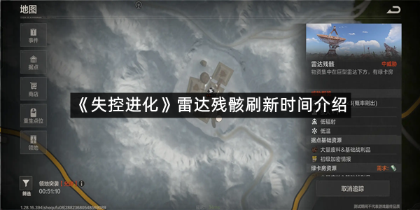 《失控进化》是一款废土冒险生存游戏,玩家们可以随时随地的建造自己自己的家园和打造自己的武器,然而需要很多材料,包括雷达残骸这个材料,那么刷新时间是多久呢?怎么获取呢?现在就让指玩手游网的小编为大家带来关于《失控进化》雷达残骸刷新时间介绍的全部内容吧,感兴趣的小伙伴一定不要错过。