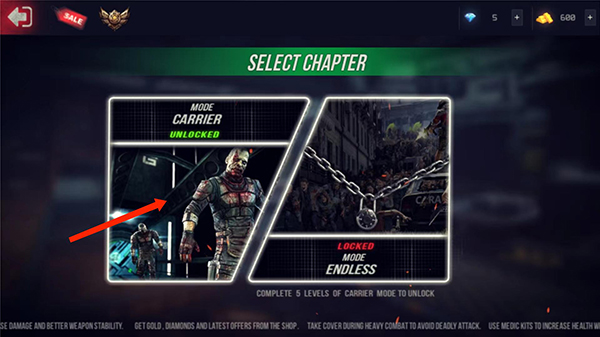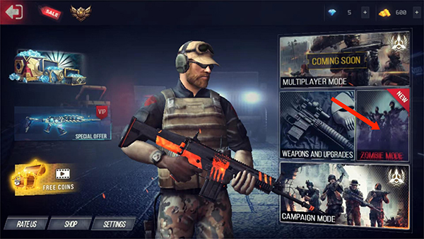 1、首先打开终极战斗打击最新版,进入游戏主界面,然后选择右侧的【ZOMBIE MODE】僵尸模式选项。