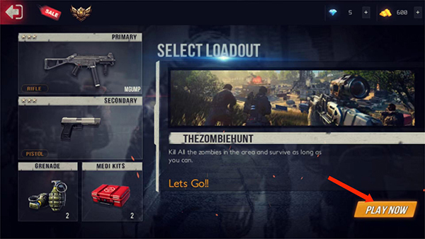 5、装备完成后,点击右下角的【PLAY NOW】,即可正式开启僵尸模式。