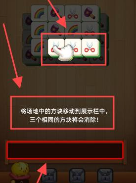 将三个相同的方块移动到下方的框中,就可以消除它们。