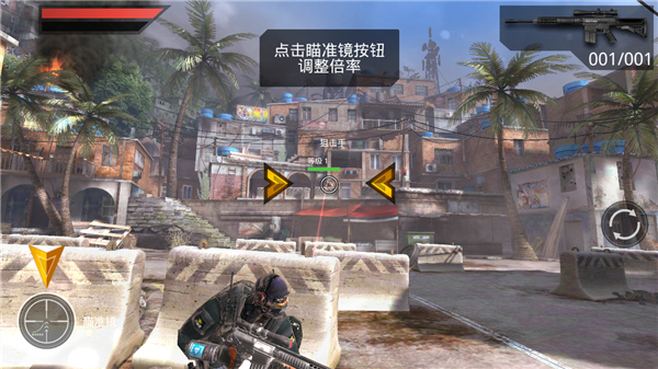 6、点击左边的屏幕控制瞄准,然后点击Fire射击并杀死敌人。