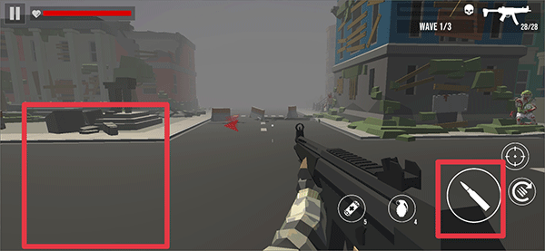 2、在游戏中,你通过移动左边的屏幕来控制方向,右边的子弹按钮用来发射弹药和杀死僵尸