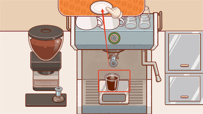 9、如果咖啡数量不足,注意观察绿色区域线条,再次点击按钮完成操作。
