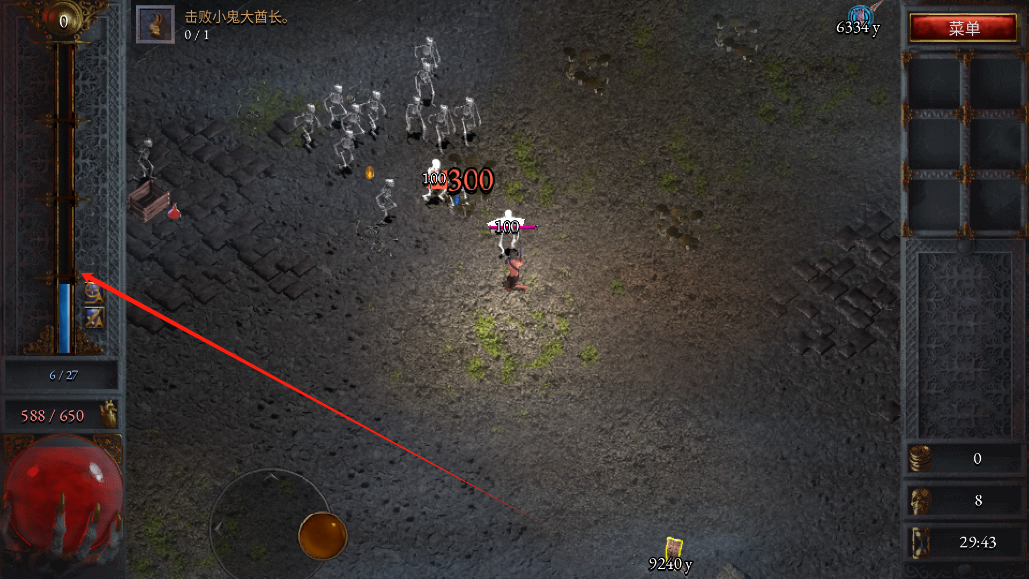 4、当属性都提升得差不多后,就可以开始闯关挑战,去击败那些骷髅怪。