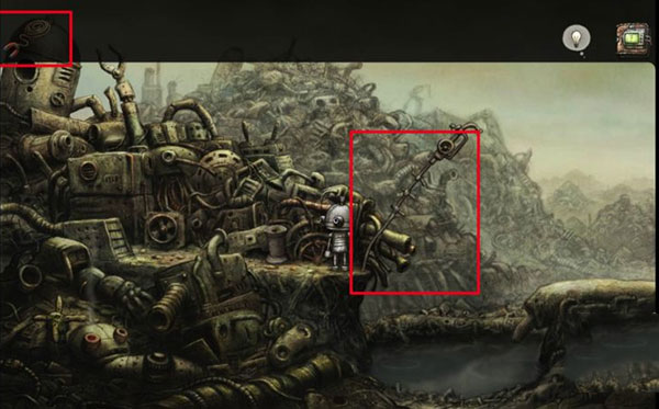 4、点击磁铁和缠绕在线圈上的绳子收集两件物品。点击最后一个垂直的管子,机器人就会把它弯曲。