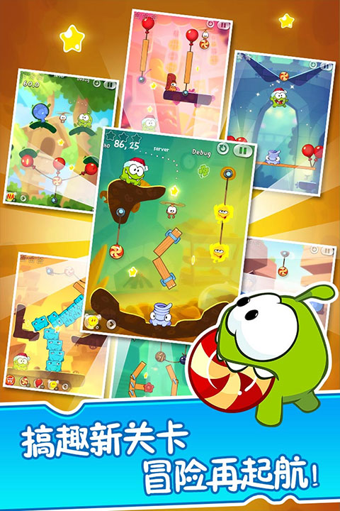 1、割绳子2有282个关卡的挑战,并添加了一个全新的“水果超市”地图。