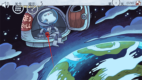1、第一关:点击宇航员的氧气瓶,然后滑动他的腿通过关卡。