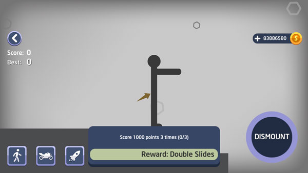 3、通过长按左下角的【DISMOUNT】按钮来控制火柴人的行动,灵活操作才能顺利通关。