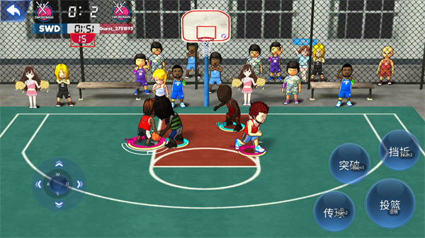在游戏过程中,玩家可以控制角色,用手指模拟投篮动作,体验真实的投篮感觉,轻松上手篮球操作,在比赛中,运动员需要灵活运用篮球技巧,将篮球投进篮筐得分,不同的技术有不同的篮球效果,各种不同的竞技战斗可供选择,包括1对1,2对2和3对3等等,可以根据自己的喜好选择玩,体验不同的乐趣。