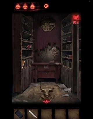 7、进入藏经阁后,墙上有三本明显的书,点击获得线索: