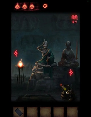 3、前往第二个场景的老头处,将【蜡烛】点燃(左侧火堆),再放入右侧香炉中。(香炉中还需放置3个物品)