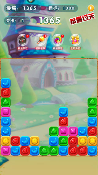 3、在精灵消消乐每个关卡中,有各种类型的方块和糖果,玩家需要消除三个或更多的方块。
