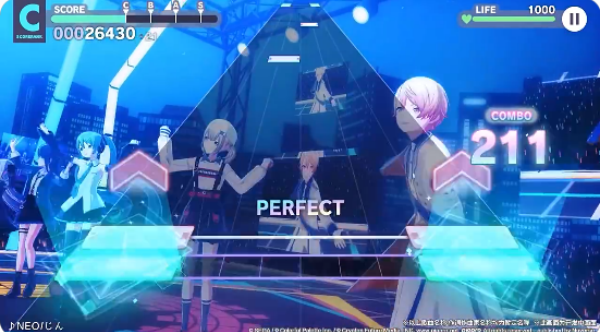 1、进入游戏,经典角色初音未来出现了,选择音乐并开始关卡。