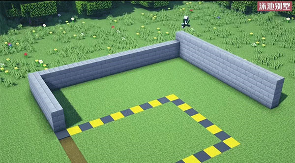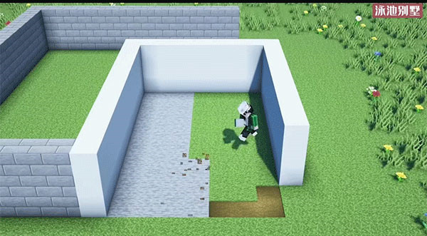 3、接着用白色混凝土搭建一个游泳池的框架,形成清晰的池边轮廓;