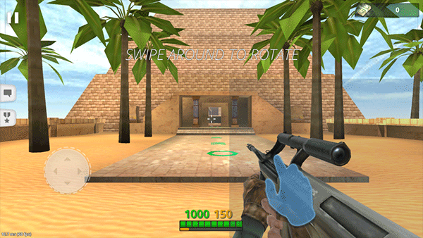 2、屏幕左侧控制人物移动方向,右侧则控制视角移动,同时可进行射击、换弹等操作。