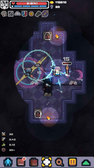 1、探索像素风格的游戏世界,不断挑战地牢谜题,与敌人战斗,并寻找宝藏。
