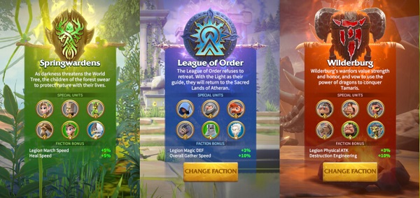 游戏开始时,您需要从三个可用派系中选择一个:秩序联盟(人类)、Springwardens(精灵)和Wilderburg(兽人)。每个派系都拥有独特的单位、建筑风格、技能以及专属英雄。选择派系后,您可以建立自己的城市、收集资源、训练并部署军队与其他玩家作战,同时还可以加入或创建联盟。
