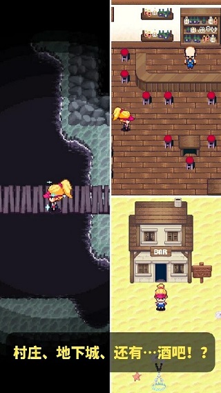 2、各种丰富的场景,包括地牢、村庄、训练场、俱乐部,甚至酒吧。