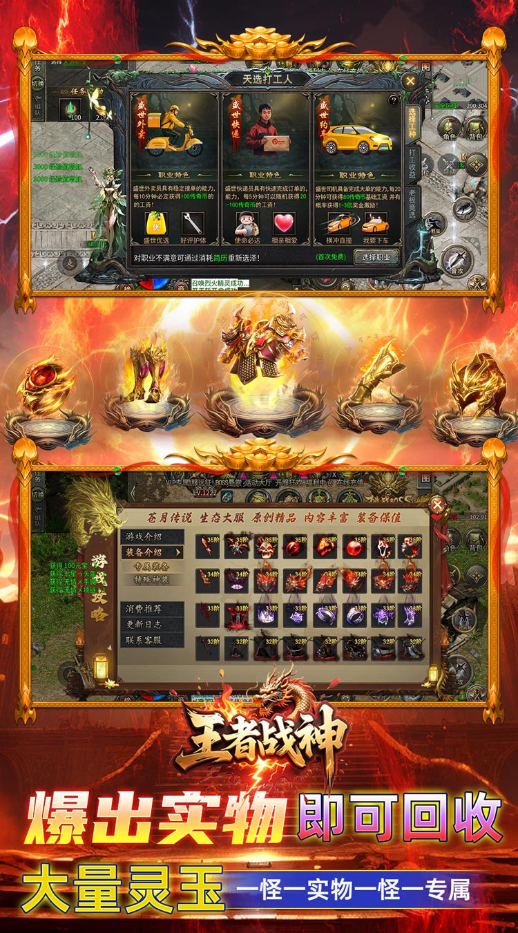 1、王者战神打工人传奇游戏中的装备产出率非常高,能让玩家轻松获得强大的装备并提升战斗实力。