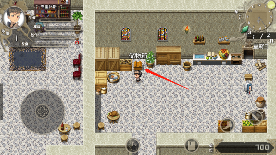3、在教堂厨房左上角可以找到一个储物箱,游戏后期可以通过花费金币升级储物箱,从而增加可存放物品的数量,方便管理背包。