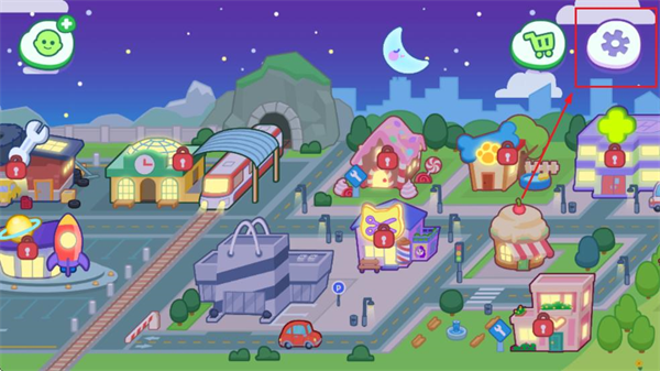 1、打开汤姆猫小镇,在主界面点击右上角的“设置”按钮。