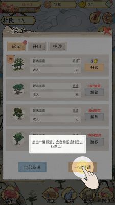 5、在获得村民后,你可以派遣他们去工作并赚取收入