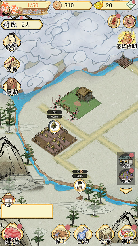 3、水乡芳华录游戏设计了多种商业运作模式,只有拥有大量的资源,才能提高自己的地位。