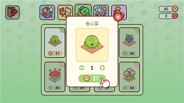 7、然后选择你需要购买的作物,点击“购买”,这里,编辑买了卷心菜种子。
