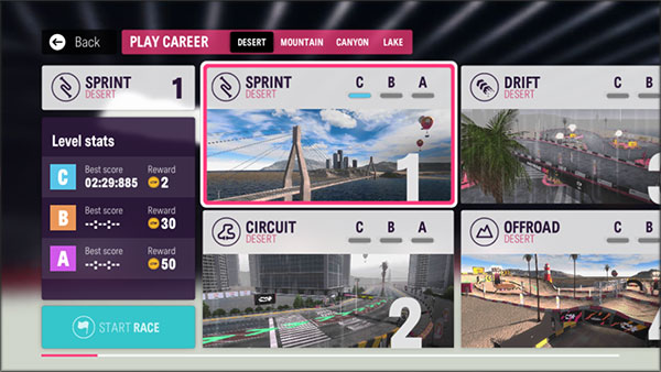 4、拉力地平线挑战不同的赛道设计,逐渐磨练和提高你的驾驶技能。