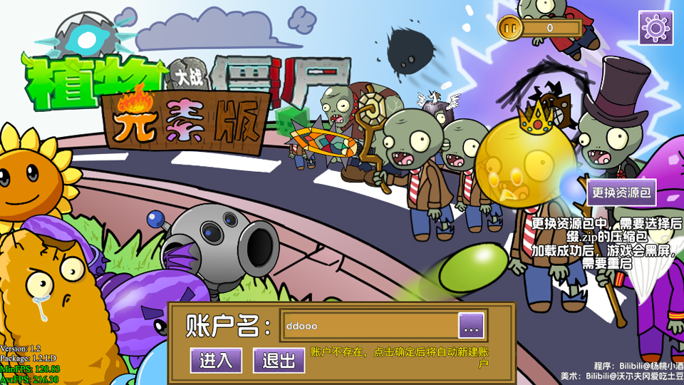 1、打开植物大战僵尸元素版后,先为角色取一个昵称,然后进入游戏主界面。