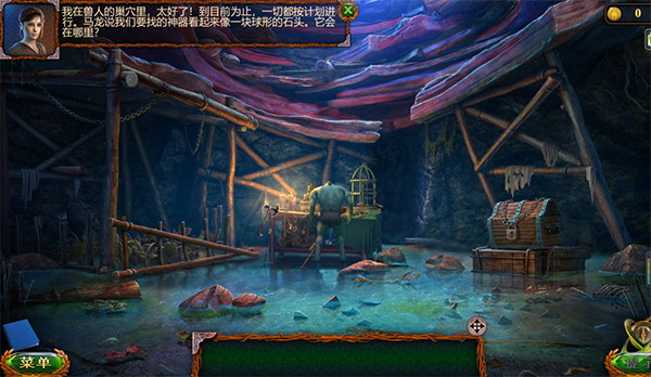5、解开桌面上的谜题之后,可以获得一根绳子,将绳子使用在前面打晕的兽人身上获取的钥匙上,就能打开右侧的箱子。