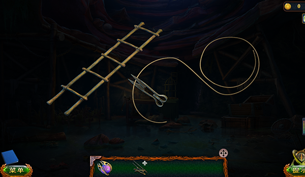 6、在箱子里可以获得球面石以及剪刀,接下来将之前收集的梯子碎片进行拼装,把散落在上面的木材装回梯子上,然后使用剪刀剪开绳子完成准备。