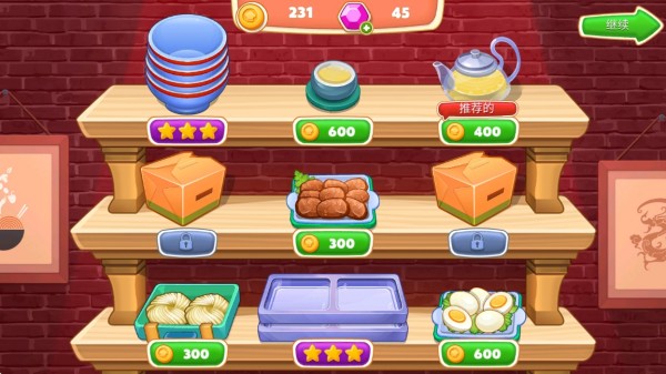 5、获得的金币可以用来解锁更多种类的美食和餐具,让你的餐厅变得更丰富多彩。